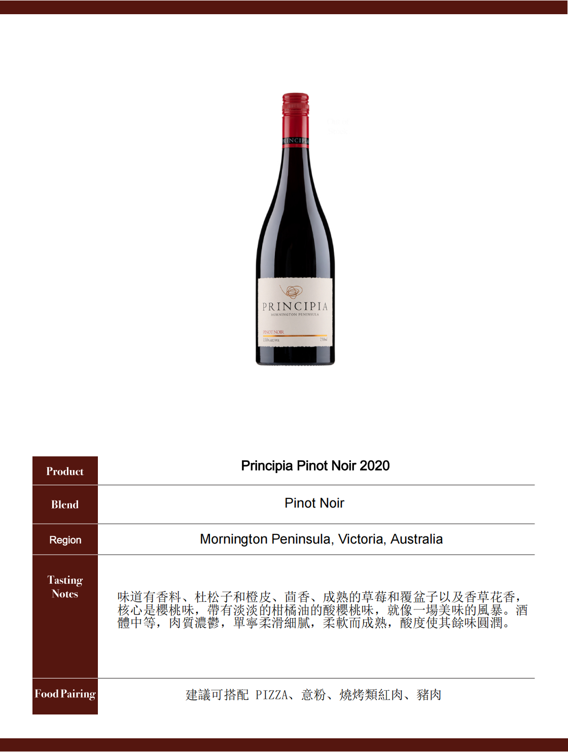 味道有香料、杜松子和橙皮、茴香、成熟的草莓和覆盆子以及香草花香,核心是櫻桃味,帶有淡淡的柑橘油的酸櫻桃味,就像一場美味的風暴。酒體中等,肉質濃鬱,單寧柔滑細膩,柔軟而成熟,酸度使其餘味圓潤。