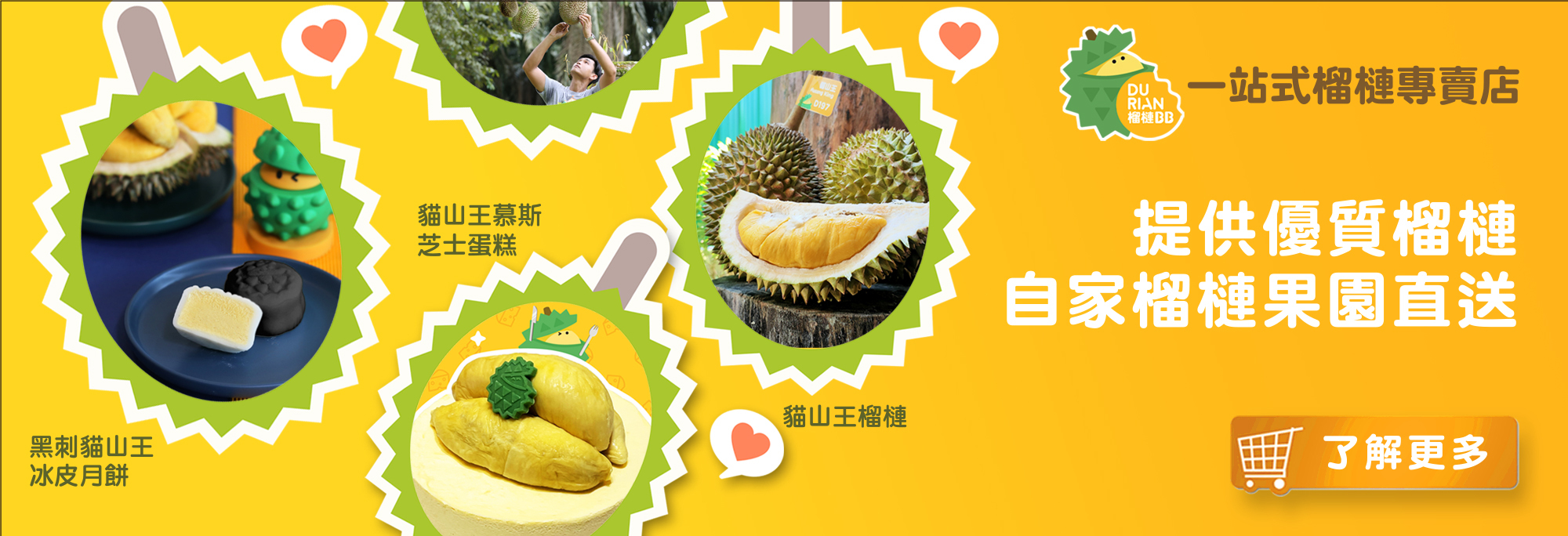 為了令每個客人都能品嘗到新鮮的榴槤,他們在吉隆玻市中心建立了約萬尺的榴槤專賣店 - 榴槤BB四季果園 (DurianBB Park) ,一年四季每天直送最新鮮美味的榴槤到榴槤BB四季果園供客人享用。