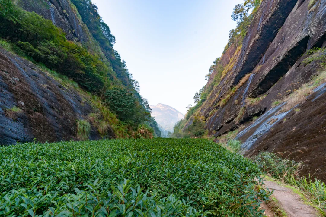 為屏障,山間常年雲霧瀰漫,把太陽的直射光轉變成漫射光,更利於茶