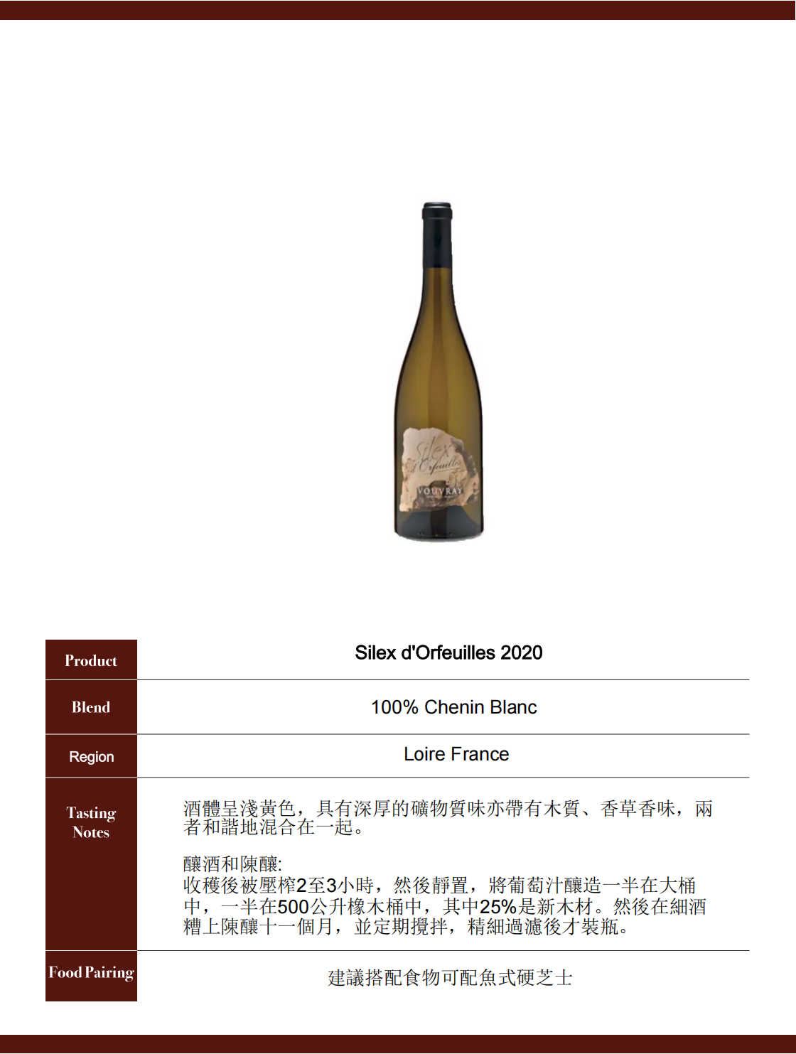 酒體呈淺黃色,具有深厚的礦物質味亦帶有木質、香草香味,兩者和諧地混合在一起。